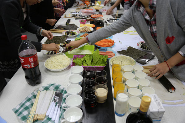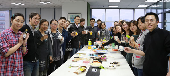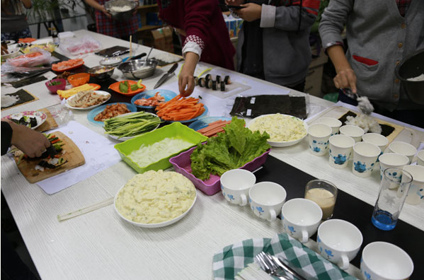 开展这种工作之外的闲暇活动既提高了大家对日语学生的兴趣又增加了愉悦的工作氛围,同时让大家学会了一种新的料理方法,十分有趣、有意义。