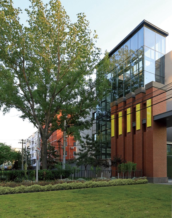 主体建筑由洗浴中心改造而来,给每栋楼添加了外挂式无障碍升降楼梯。中央庭园配比种植了常青植物与落叶植物,可以让患者在病房中感受到庭园四季不同的景观效果,并起到刺激视觉的作用。地面大多采用透水砖,以防止雨天积水,给医患造成不便。楼宇之间设置了玻璃连廊,既不遮挡阳光,又方便了医患雨天移动。为了给康复中的患者提供更充足更方便的活动空间,在北侧楼顶设置了屋顶花园,和中央庭园来往的人群分离开,康复患者可以在此安静的沐浴阳光。